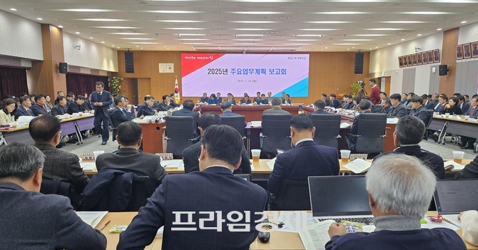 [프라임경제] 충남도는 20일 도청 대회의실에서 김태흠 지사와 김기영·전형식 행정·정무부지사, 실·국·원·본부장 등 120여 명이 참석한 가운데 2025년 주요업무계획 보고회를 개최했다.