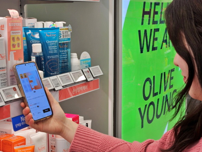 전자라벨-NFC 기반 상품 탐색 서비스는 지난해 11월 오픈한 혁신 매장 '올리브영N 성수'를 포함해 전자라벨이 적용된 전 매장에 도입돼 있다. 올리브영 온라인몰 애플리케이션이 설치된 스마트폰으로 이용 가능하다.