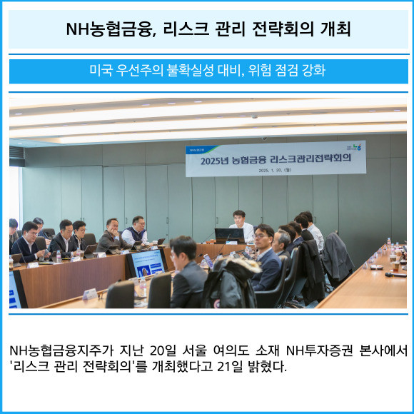 [프라임경제] NH농협금융지주가 지난 20일 서울 여의도 소재 NH투자증권 본사에서 '리스크 관리 전략회의'를 개최했다고 21일 밝혔다.