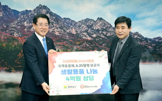 [프라임경제] 전라남도는 21일 (사)희망을 나누는 사람들(회장 김정안)로부터 국가유공자 지원을 위해 4억원 상당의 후원물품을 기탁받았다고 밝혔다.