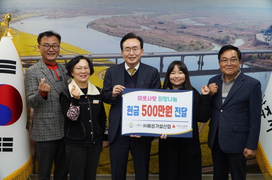 윤병태 나주시장은 "㈜해성가설산업의 따뜻한 나눔에 깊은 감사를 드린다"며 "소중한 후원금을 꼭 필요한 분들에게 공정하고 투명하게 전달하겠다"고 말했다.