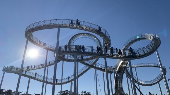 포스코가 제작해 기부채납한 스페이스워크는 지난 2021년 11월19일에 개장한 국내 최초·최대의 체험형 스틸 트랙 조형물로, 총 333m 길이의 철 구조물 트랙을 따라 걸으며 영일만의 일출과 일몰, 포스코 제철소의 야경 등 주변 풍경을 360도 파노라마로 감상할 수 있는 관광지다.