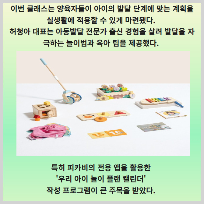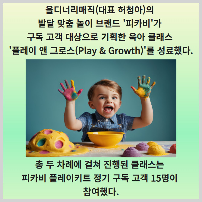 [프라임경제] 올디너리매직(대표 허청아)의 발달 맞춤 놀이 브랜드 '피카비'가 구독 고객을 대상으로 기획한 육아 클래스 '플레이 앤 그로스(Play & Growth)' 성료했다고 22일 밝혔다.