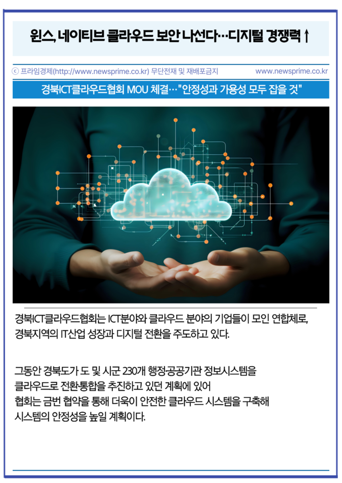 이번 양사의 협력은 △클라우드 보안 기술의 상호 교류 및 비즈니스 확대 증진 △클라우드 서비스 인프라, 기술 데이터 및 최신 정보 공유 △경북지역 클라우드 네이티브 전환사업 공동발굴 등이 있다.