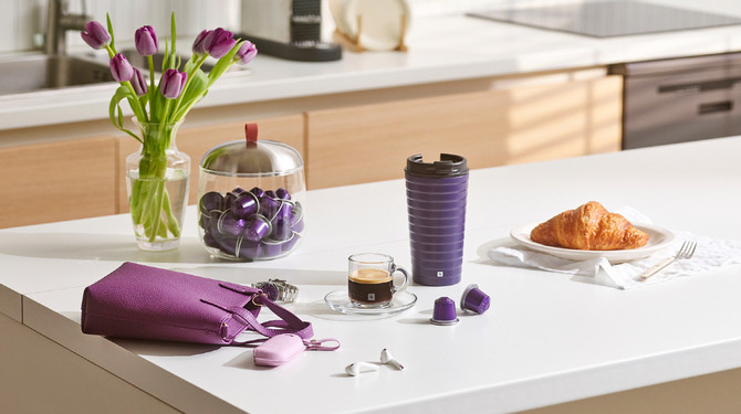 네스프레소는 아이코닉한 아르페지오의 보랏빛 컬러를 활용한 액세서리 2종도 출시했다. '리미티드 에디션 트래블 머그 터치'는 언제 어디서나 완벽한 커피 경험을 선사하는 스테인리스 텀블러다. 이중 구조의 리사이클 스테인리스 스틸로 제작돼 따뜻한 라테나 시원한 아이스 커피를 오랜 시간 즐길 수 있을 뿐만 아니라 환경까지 한 번 더 생각한 제품이다. '픽시 에스프레소 아르페지오 컵' 또한 이중 구조의 스테인리스 스틸 재질을 사용해 원하는 온도로 오랫동안 커피를 즐길 수 있게 해준다. 디자인은 네스프레소 아르페지오의 유니크한 색감을 담아 다채로운 커피 모먼트를 선사한다.
