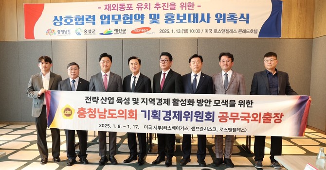 출장 단장인 지민규 의원은 "이번 방문을 통해 도내 기업의 미국 진출을 위한 무역박람회 지원 확대와 해외사무소 활성화 방안을 논의했으며, 베이밸리의 성공 추진을 위한 행정·재정적 지원 방향도 모색했다"면서, "출장 결과를 충실히 정리해 의원들과 공유하고, 충남이 글로벌 경제의 중심지로 도약할 수 있도록 의회 차원의 지원을 아끼지 않겠다"고 강조했다