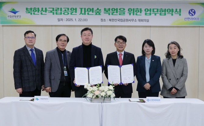 신한라이프는 전날 북한산국립공원 사무소에서 국립공원공단과 북한산국립공원의 자연숲 복원 사업을 위한 업무협약을 체결했다고 23일 밝혔다.