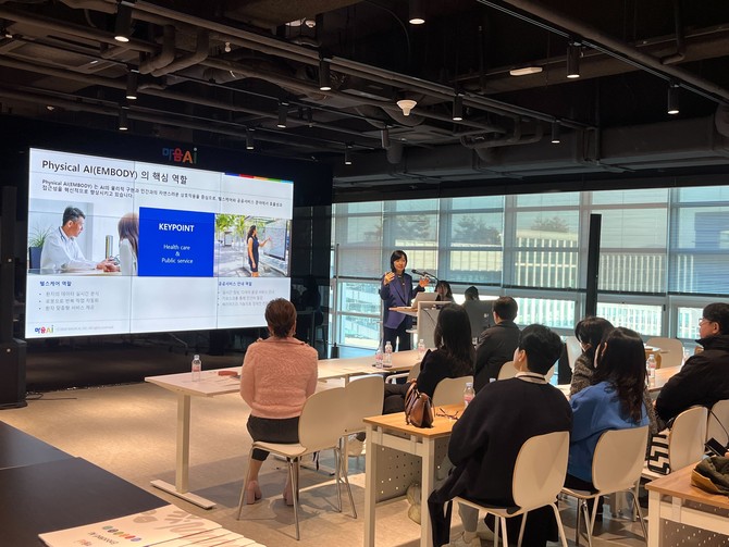 이번 워크숍은 마음AI 사옥 견학과 특강으로 진행됐다. CES 2025에서 발표된 혁신적인 AI 기술 트렌드와 함께 외국인 유학생을 위한 동시통역사 설치 계획이 집중적으로 다뤄졌다.