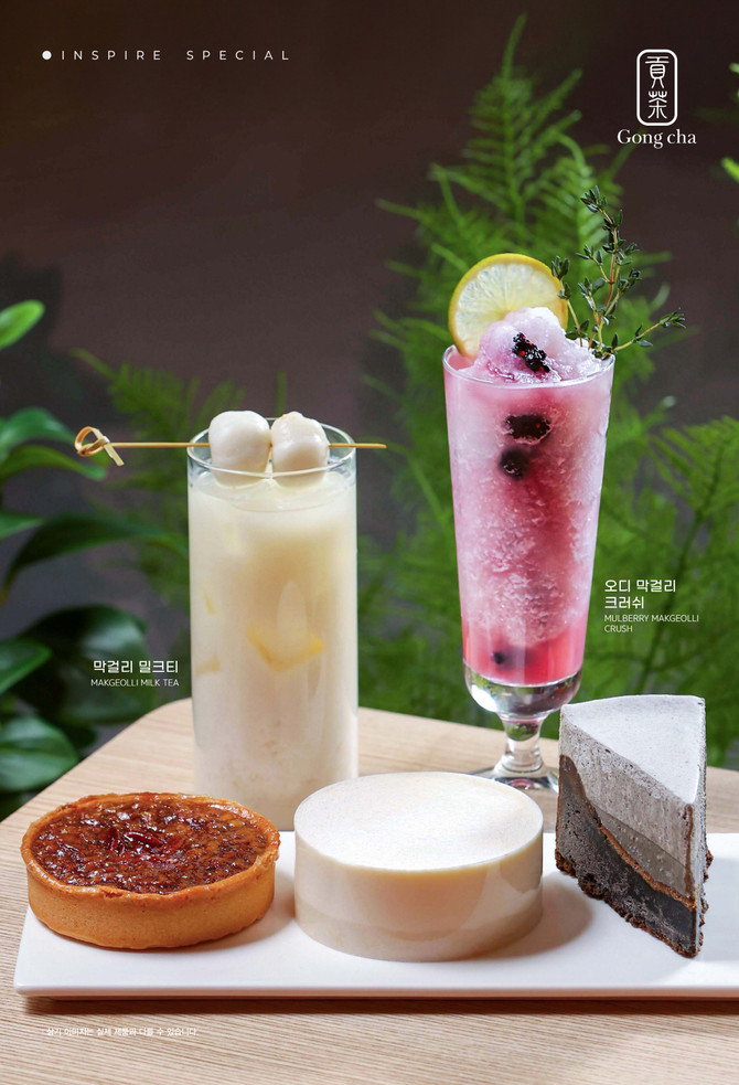 먼저 음료는 △막걸리 밀크티 △오디 막걸리 크러쉬 2종으로 선보인다. '막걸리 밀크티'는 막걸리에 산뜻한 오스만투스티를 조합한 이색 음료로, 과일과 꽃 향기가 어우러진 오스만투스티가 막걸리의 깊고 부드러운 풍미와 조화를 이룬다. '오디 막걸리 크러쉬'는 달콤한 오디에 부드러운 막걸리, 오스만투스 우롱티를 더한 티 크러쉬 음료로 가볍고 산뜻하게 즐기기 좋다.