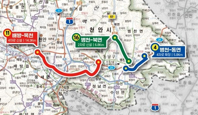 특히, 신방목천 국도대체우회도로가 개통되면 천안형 외곽순환도로망이 완성돼 도심 교통 혼잡을 해소하고 지역 간 이동과 도심 접근성이 크게 개선될 것으로 기대된다. 또한, 병천동면 21번 국도 확장과 병천~북면 57번 국지도 개설은 교통 흐름의 분산과 차량 통행 시간 단축을 가져올 전망이다.