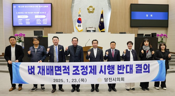 [프라임경제] 당진시의회(의장 서영훈)는 지난 23일 제116회 임시회 제3차 본회의에서 윤명수 의원이 대표발의한 '벼 재배면적 조정제 시행 반대 결의안'을 채택하며 정부의 일방적인 정책 추진에 강력히 반대한다고 밝혔다.
