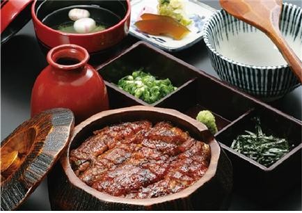 일반 장어덮밥과 달리 널찍한 밥통(히쓰)에 잘게 자른 장어가 가득 올라간다. 이 푸짐한 요리는 별도 공기에 담아 △처음 그대로 △파·김·겨자 등 양념을 올려 △녹차를 부어 △식성에 따라 등 방식으로 차례차례 먹는다.