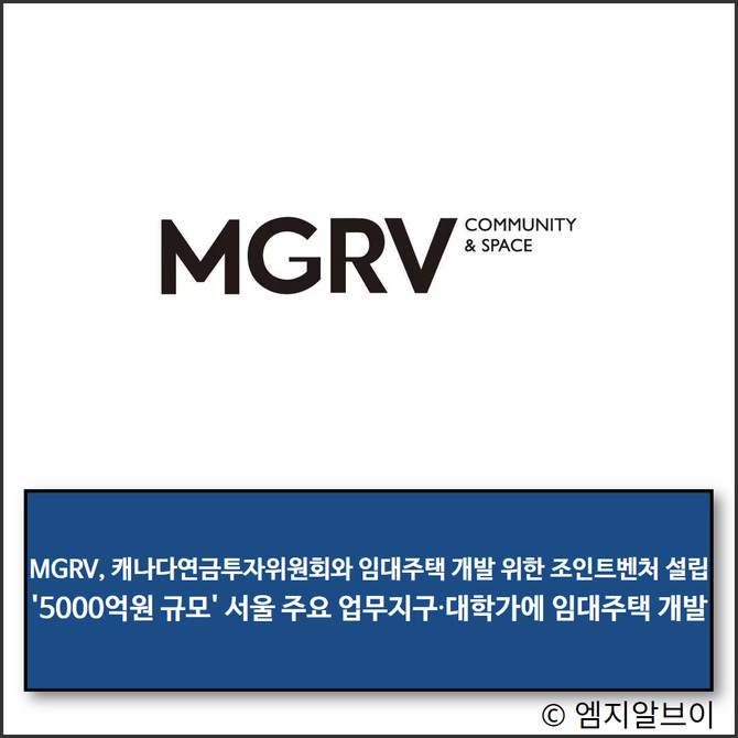 부동산 임팩트 디벨로퍼 엠지알브이(MGRV)가 캐나다연금투자위원회(CPP Investments)와 손잡고 임대주택 프로젝트 개발을 위한 조인트벤처를 설립한다.