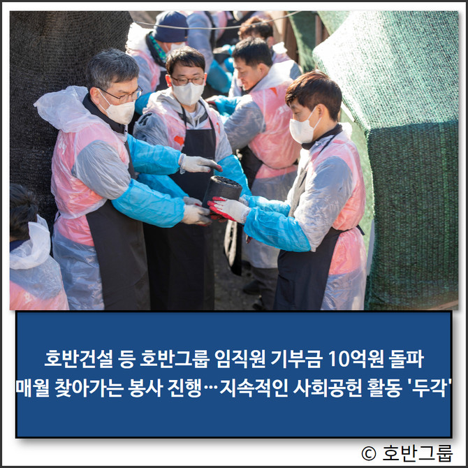 호반그룹 임직원 누적 기부금이 10억원을 달성했다.