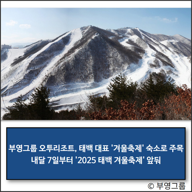 눈의 도시 태백을 대표하는 겨울철 인기 축제 ‘2025 태백 겨울축제’가 내달 7일부터 태백산국립공원과 황지연못 일원에서 열린다. 이 가운데 인근 소재의 부영그룹 오투리조트가 지리적 이점을 기반으로 관광객들로부터 많은 관심을 모으고 있다.