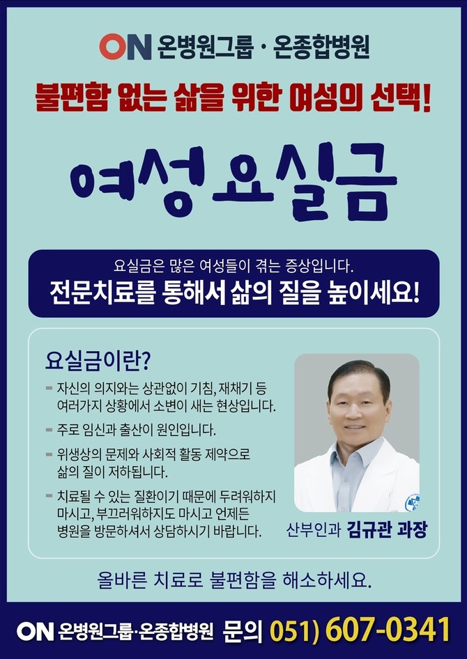 부산 온종합병원 요실금클리닉 김규관 소장(산부인과전문의)은 "요실금은 본인의 의지와 관계없이 소변이 유출되는 현상을 말한다"고 정의했다. 요실금은 나이와 상관없이 발생할 수 있으나, 특히 중년 이후의 여성이나 신경학적 질환을 가진 노인에서 흔하다고 김 소장은 덧붙였다.