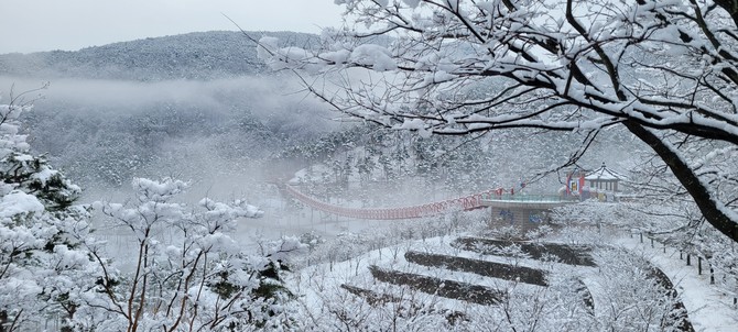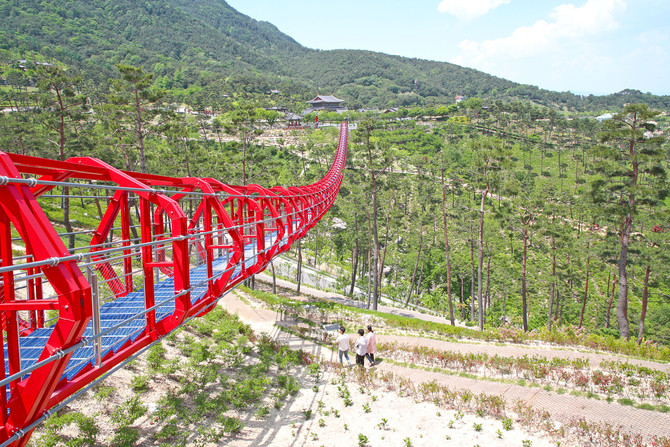 특히 동의보감촌 랜드마크 무릉교는 남동쪽으로 흘러내려가는 무릉계곡 위를 걸으며 왕산과 필봉산의 경치를 만끽할 수 있어 큰 인기를 끌고 있다.