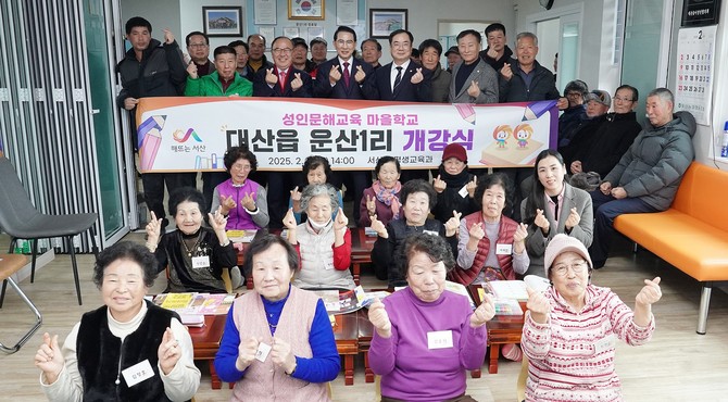 [프라임경제] 충남 서산시는 4일 대산읍 운산1리 마을회관에서 '2025년 성인문해교육 마을학교' 개강식을 개최했다고 밝혔다.