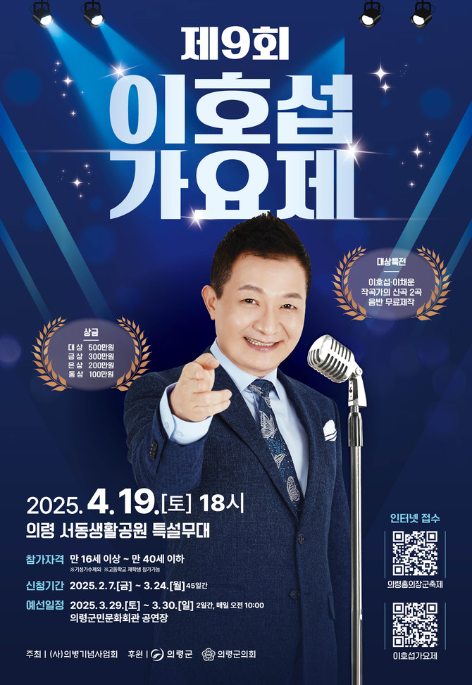 [프라임경제] 의령군이 2월7일부터 3월24일까지 '제9회 이호섭가요제' 예선 참가자를 모집한다.