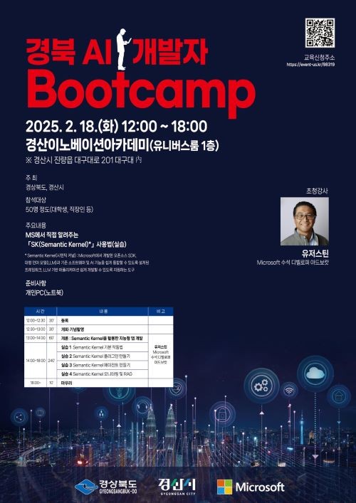 [프라임경제] 경북도와 경산시는 인공지능 관련 최신 기술을 직접 실습하고 체험할 수 있는 '경북 AI 개발자 Bootcamp'를 오는 18일, 경산이노베이션 아카데미 유니버스룸(대구대학교 내)에서 개최한다.