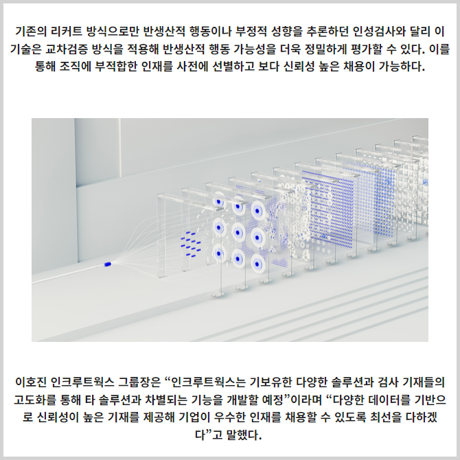 [프라임경제] HR테크기업 인크루트(대표 서미영)가 지난 1월 인성검사 관련 특허 2건의 등록에 성공했다. 추후 기업 우수 인재 채용에 많은 변화를 불러다 줄 것으로 기대한다.