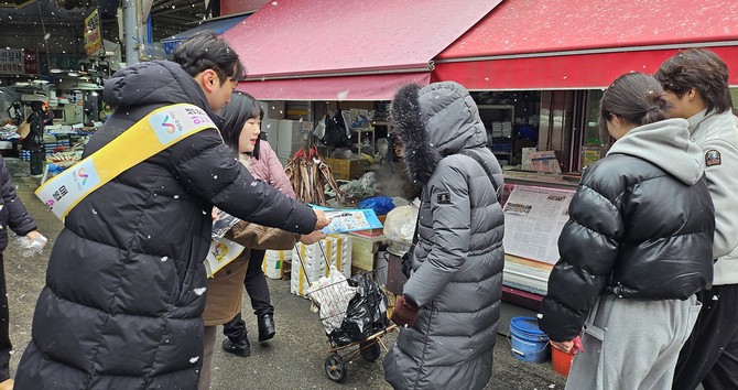 이날 참여자들은 동부전통시장과 시외버스터미널을 찾은 시민들에게 핫팩을 배부하며 한파 대비 홍보 요령과 안전 디딤돌 앱 사용법을 안내했다.