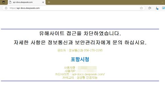 딥시크는 AI 기반의 코딩 및 대화형 챗봇 서비스로 주목받고 있으나, 국내외 보안 및 개인정보 보호 기준을 충족하는지에 대한 검토가 필요하다는 지적에 따라 포항시는 정보보안 및 개인정보 유출 위험을 사전에 차단하기 위해 지난 6일부터 해당사이트의 접속을 막고 있다.