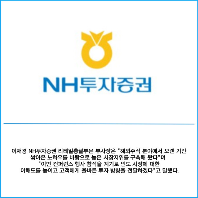 [프라임경제] NH투자증권(00594)은 인도 선도증권사 ICICI가 주최하는 '20th Annual 컨퍼런스 2025(인도 기업 IR 컨퍼런스)'에 참석했다.