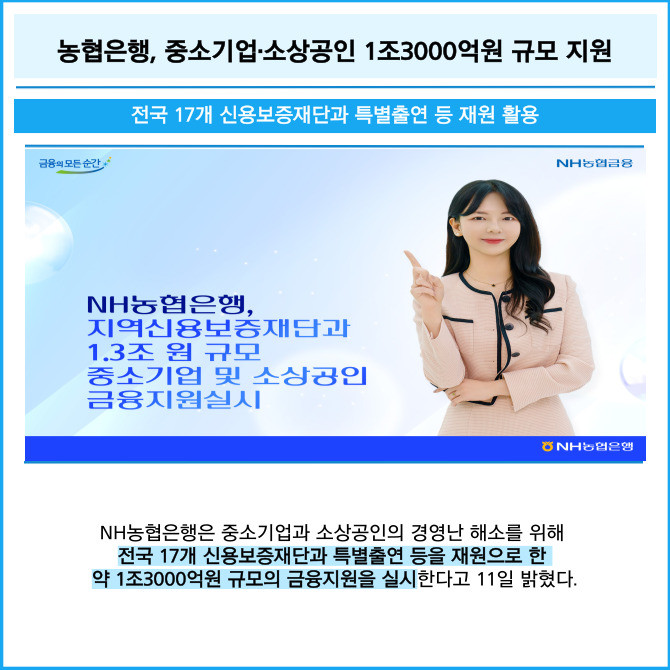 [프라임경제] NH농협은행은 중소기업과 소상공인의 경영난 해소를 위해 전국 17개 신용보증재단과 특별출연 등을 재원으로 한 약 1조3000억원 규모의 금융지원을 실시한다고 11일 밝혔다.
