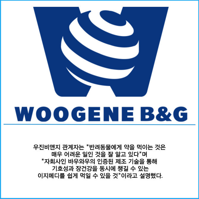 [프라임경제] 우진비앤지(018620)는 대한수의사회 자회사인 한수약품과 반려동물 투약보조제인 '이지메디' 출시와 관련해 업무협약을 체결했다고 11일 밝혔다.