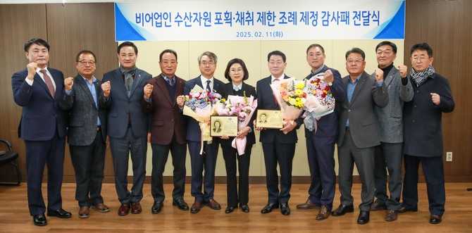 이 자리에서 김기성 대표이사는 "수산업에 대한 깊은 관심과 애정을 바탕으로 비어업인의 수산자원 포획·채취 제한에 관한 조례를 제정해 어업인의 권익 증진과 수산업 발전에 기여한 공로가 크다"며 감사를 표했다.