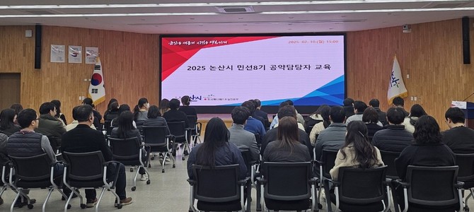 [프라임경제] 충남 논산시(시장 백성현)는 지난 10일 시청 회의실에서 민선 8기 공약사업 담당 및 담당자 100여명을 대상으로 '2025 매니페스토 실천 교육'을 실시했다.