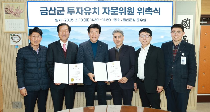 금산군은 이번 자문위원 위촉을 통해 관외 우량기업 유치와 지역 경제 발전을 도모하고, 기업하기 좋은 환경을 조성해 인구 유입과 일자리 창출에 기여할 방침이다.