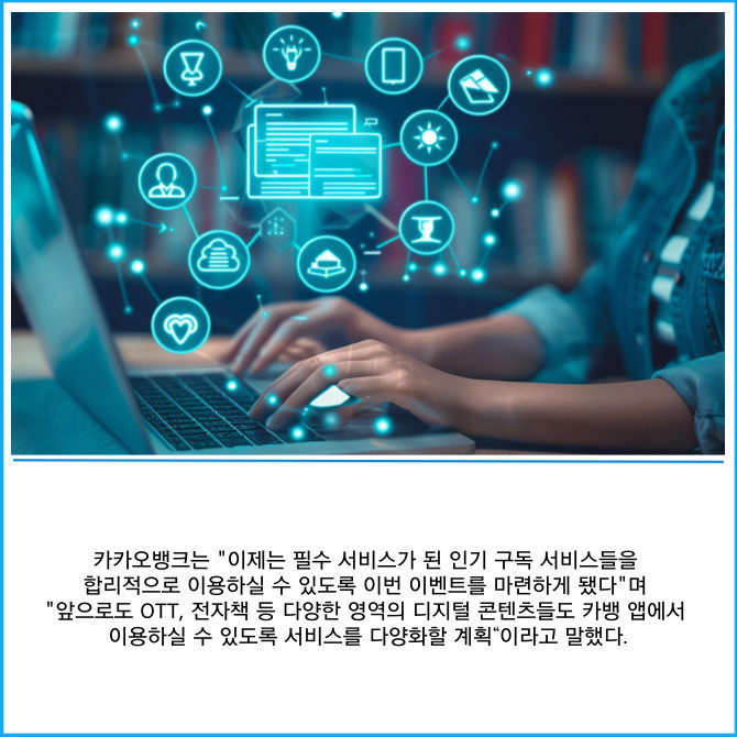 [프라임경제] 카카오뱅크(323410)는 '똑똑한 구독생활' 서비스 출시를 기념해 이벤트를 진행한다고 12일 밝혔다.