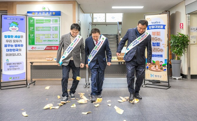 이날 조근제 함안군수를 비롯한 부군수, 국장들이 참석했으며, 직원들의 출근길에 맞춰 청렴 실천 다짐과 함께 부럼 및 박 깨기 행사를 진행했다. 참석자들은 '부패박살! 갑질타파! 청렴실천!'이라는 청렴 구호를 함께 외치며 부정부패 근절 의지를 새롭게 다졌다.