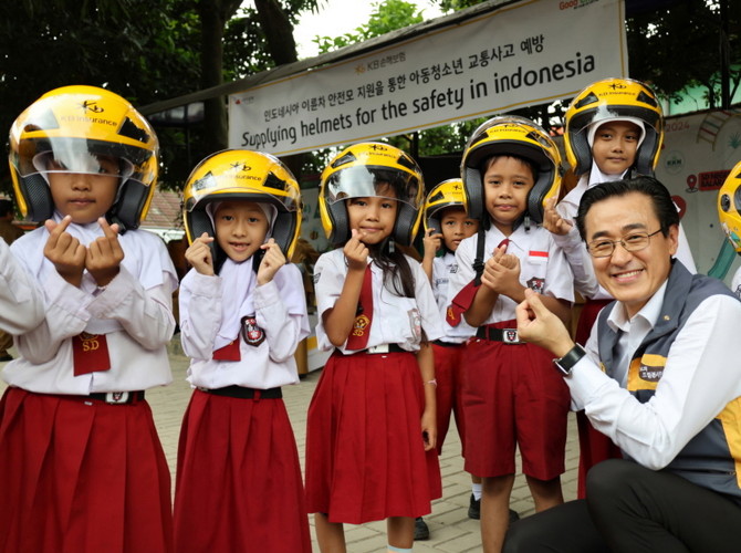 ◆KB손해보험, 인니 취약계층 아동·청소년 '이륜차 안전모' 지원