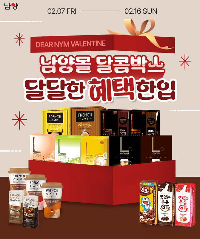 남양유업(003920)이 밸런타인데이를 맞아 오는 16일까지 자사몰 '남양몰'과 네이버 브랜드스토어에서 할인 프로모션을 진행한다. 이번 프로모션에서는 △초코에몽 △테이크핏 △프렌치카페 △루카스나인 △맛있는우유GT △아이엠마더 등 대표 제품을 최대 70% 할인된 가격에 제공하며, 추가 혜택도 마련했다.