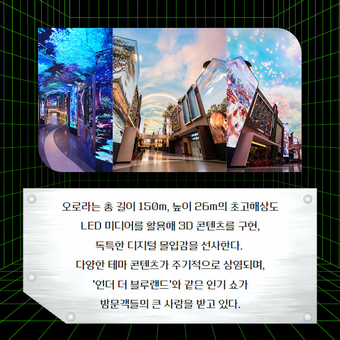 [프라임경제] 모히건 인스파이어 엔터테인먼트 리조트의 몰입형 디지털 엔터테인먼트 거리 '오로라'는 개장 1년 만에 500만명 이상이 방문하며 국내 대표 관광지로 자리잡았다. 오로라는 대형 LED 미디어, 음향 시설, 미디어 쇼를 융합해 새로운 몰입 경험을 제공하며 지난 한 해 동안 8만건 이상의 소셜미디어 언급을 기록하며 큰 화제를 모았다.