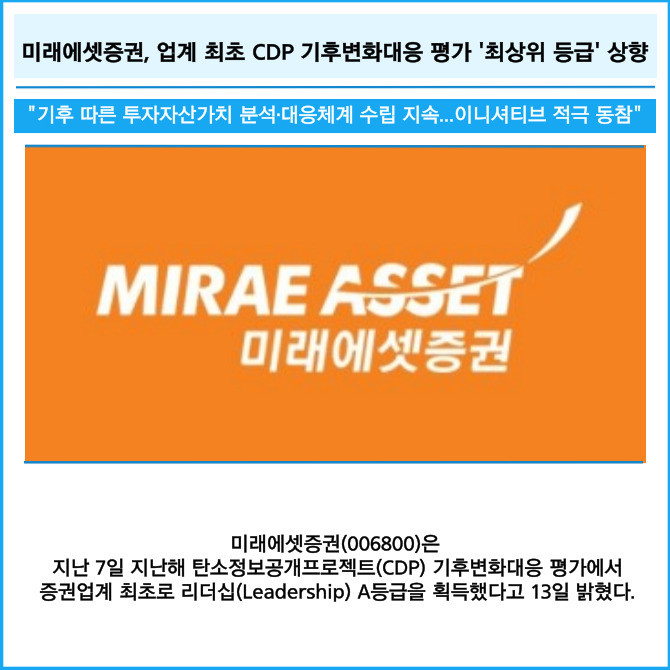 [카드] 미래에셋증권, 업계 최초 CDP 기후변화대응 평가 '최상위 등급' 상향