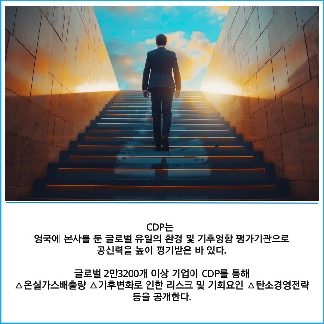 글로벌 2만3200개 이상 기업이 CDP를 통해 △온실가스배출량 △기후변화로 인한 리스크 및 기회요인 △탄소경영전략 등을 공개한다.