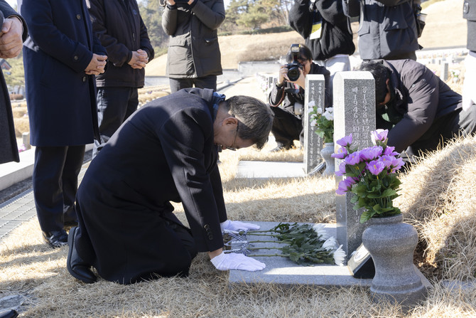 이어 김 지사는 5.18 민주항쟁추모탑을 찾아 이한열, 윤상원 열사 묘역과 함께 경기도 출신 열사들의 묘역, 유해를 찾지 못한 열사들의 묘역을 두루 찾아 헌화한 후 무릎을 꿇고 비석을 어루만지며 추모했다.