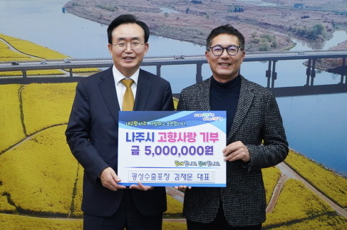 [프라임경제] 전라남도 나주시(시장 윤병태)는 최근 광성수출포장(주)(대표 김재문)이 나주시에 고향사랑기부금 500만원을 기탁했다고 13일 밝혔다.