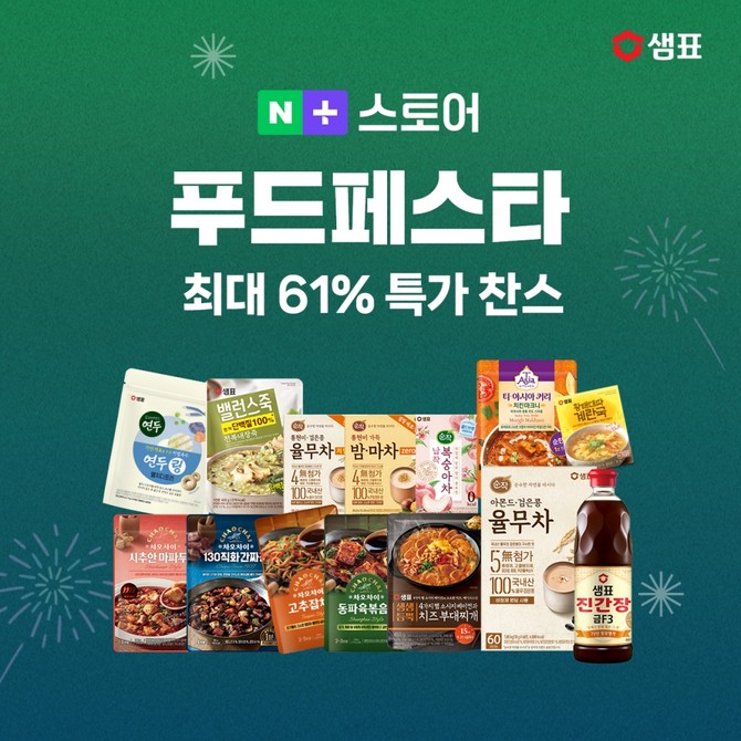샘표(007540)가 네이버 스토어 '새미네마켓'에서 샘표 인기 제품들을 특별한 가격에 선보이는 할인전을 16일까지 진행한다. 행사 종료를 앞두고 요일별 61% 할인 혜택을 받을 수 있는 초특가 이벤트도 마련했다.