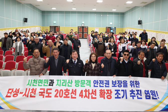 이번 성과공유회는 단성~시천 국도 20호선 4차선 확장 조기 추진 염원 퍼포먼스를 실시했으며, 지난해 시천면에서 진행된 사업 성과 등을 공유했다.