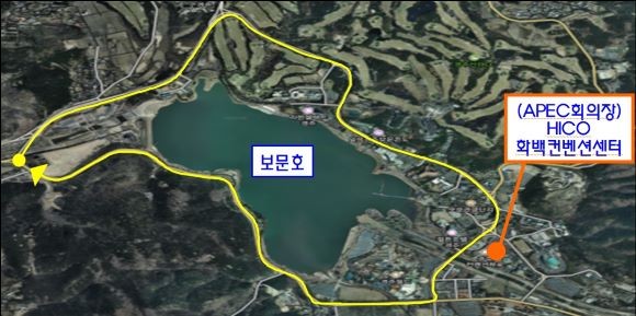 'APEC로'는 보문호수를 따라 길이 9㎞에 걸쳐, 보문교삼거리를 기점으로 시작해 원점을 순환하는 구간이다.