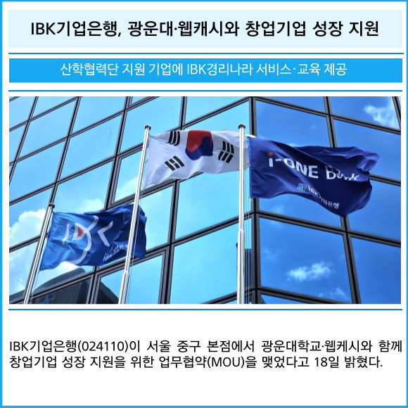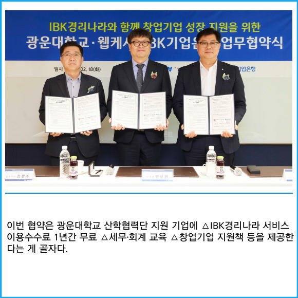 [프라임경제] IBK기업은행(024110)이 서울 중구 본점에서 광운대학교·웹케시와 함께 창업기업 성장 지원을 위한 업무협약(MOU)을 맺었다고 18일 밝혔다.