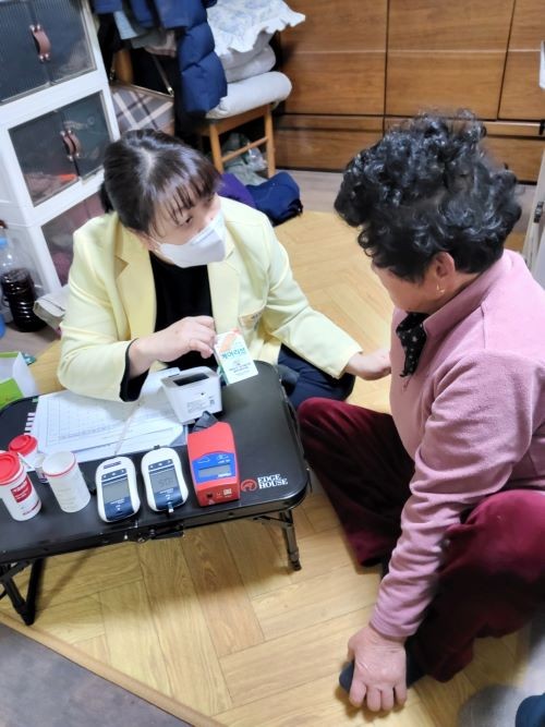 '찾아가는 방문건강관리서비스'는 △계절별(폭염, 한파) △생애주기별(노인, 임산부, 다문화) △질환별(고혈압, 당뇨병, 비만)대상자를 중점으로 건강위험요인등을 파악해 맞춤형 방문간호서비스를 제공하고 있으며 주로 혈압, 혈당, 빈혈검사 및 건강상담, 개인별 보건교육을 실시하고 있다.