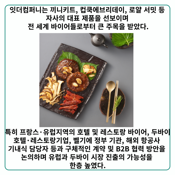 [프라임경제] 잇더컴퍼니(대표 김봉근, 이유경)가 프랑스 리옹에서 열린 세계 최대 규모의 식품·외식산업 박람회 'SIRHA LYON 2025'에 참가해 세계 시장 진출 확대에 나선다.