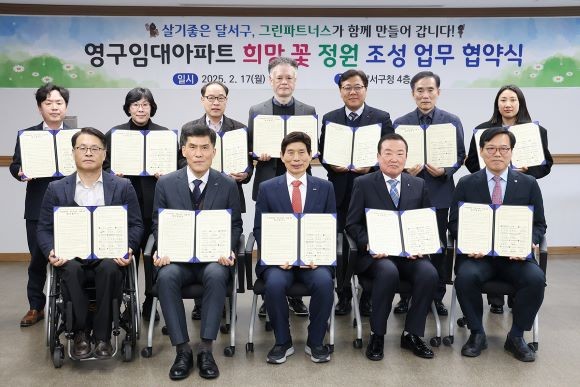 [프라임경제] 대구도시개발공사는 영구임대아파트 주민들을 위한 거주환경 개선과 입주 만족도 향상을 위해 지난 17일 달서구청, 한국토지주택공사(LH), 주택관리공단 대구경북지사 외 상인종합사회복지관을 비롯한 지역 내 사회복지관과 함께 영구임대아파트 '희망 꽃 정원' 조성 업무협약을 체결했다.