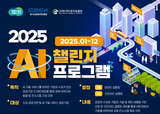 [프라임경제] 경기도와 경기도경제과학진흥원(이하 경과원)이 경기도 공공서비스 혁신을 위한 '2025년 AI챌린지 프로그램' 사업을 추진한다.